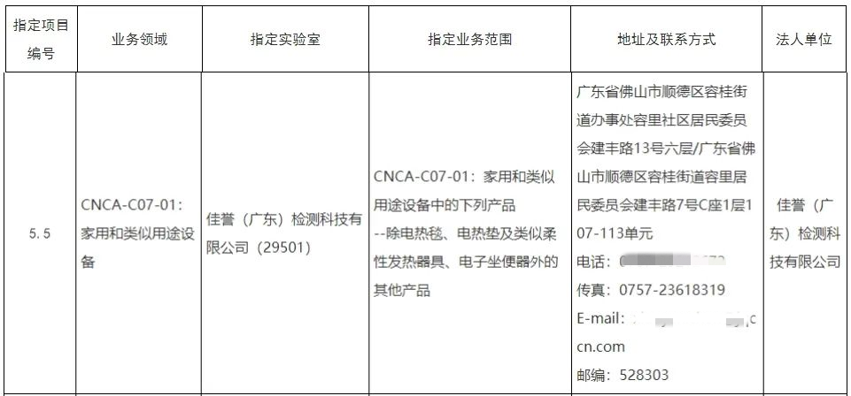根据国家认监委发布《关于发布燃气燃烧器具等强制性产品认证实施机构指定决定的公告》(2025年第4号),佳誉检测获批CNCA-C07-01:家用和类似用途设备的强制性产品认证(CCC认证)指定实验室资格。
